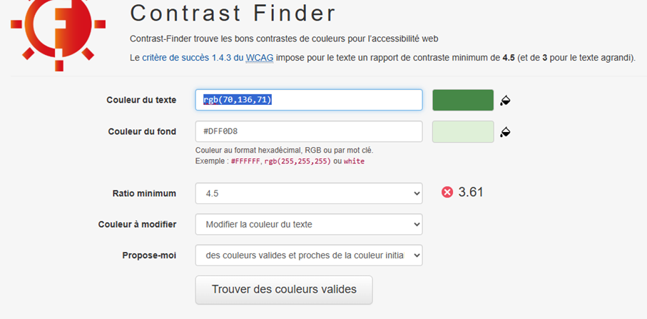 • Vérifier tout au long du développement du projet la bonne prise en compte de l’accessibilité. Pour cela, s’appuyer sur le Référentiel Général d’Amélioration de l’Accessibilité (RGAA), le référentiel français Référentiel général d’amélioration de l’accessibilité – RGAA. Ce référentiel est composé de 13 thématiques (images, cadres, couleurs, multimédia, tableaux, liens, scripts, éléments obligatoires, structuration de l’information, présentation de l’information, formulaires, navigation, consultation) et de 106 critères sous forme de question. Cela permet de questionner régulièrement son projet. Le RGAA s’appuie sur les WCAG (Web Content Accessibility Guidelines), la norme internationale qui repose sur quatre principes essentiels : la perceptibilité, l’utilisabilité, la compréhensibilité et la robustesse Règles pour l’accessibilité des contenus Web (WCAG) 2 – Vue d’ensemble | Web Accessibility Initiative (WAI) | W3C.