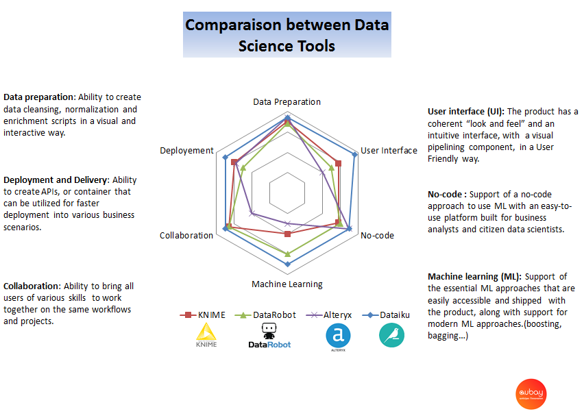 L’infographie suivante présente une comparaison détaillée entre quatre plateformes Data Science selon des critères bien choisis.